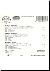 ROUSSEL, Albert, ed., MILHAUD, Darius, ed. a RAVEL, Maurice, ed. Sonatas for violin and piano [zvukový záznam]. [Praha]: Supraphon, [1990]. 1 CD audio (65:55).