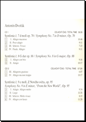 DVOŘÁK, Antonín. Symphonies nos. 7/8/9 "New World" [zvukový záznam]. [Praha]: Supraphon, [1989]. 2 CD audio (56:28; 57:29).