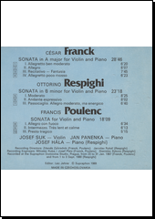 FRANCK, César, ed., RESPIGHI, Ottorino, ed. a POULENC, Francis, ed. Violin sonatas [zvukový záznam]. [Praha]: Supraphon, [1989]. 1 CD audio (70:29). Josef Suk Treasury.