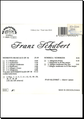 SCHUBERT, Franz. Moments musicaux op. 94: Valses sentimentales op. 50 (selection) ; Scherzos [zvukový záznam]. [Praha]: Supraphon, [1990]. 1 CD audio (49:43).