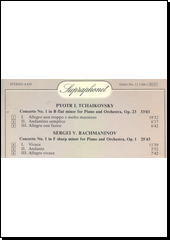 ČAJKOVSKIJ, Petr Il‘jič, ed. a RACHMANINOV, Sergej Vasil'jevič, ed. Piano concertos nos. 1 [zvukový záznam]. [Praha]: Supraphon, [1989]. 1 CD audio (58:58).