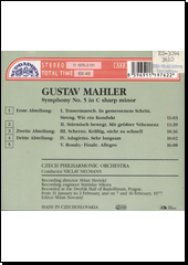 MAHLER, Gustav. Symphony no. 5 in C sharp minor [zvukový záznam]. [Praha]: Supraphon, [1992]. 1 CD audio (69:49).