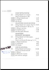 MYSLIVEČEK, Josef, ed., RICHTER, František Xaver, ed., KRAMÁŘ, František, ed. a RYBA, Jakub Jan, ed. String quartets [zvukový záznam]. Praha: Panton, [1992]. 1 CD audio (52:09).