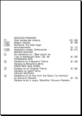 PAGANINI, Niccolò, ed., GIULIANI, Mauro, ed., SOR, Fernando, ed., KNÍŽE, František Max, ed., et al. Compositions for guitar [zvukový záznam]. Prague: Panton, [1990]. 1 CD audio (48:10).
