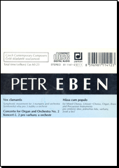 EBEN, Petr. Vox clamantis: Concerto for organ and orchestra no. 2 ; Missa cum populo [zvukový záznam]. Praha: Panton, [1992]. 1 CD audio (60:23). Čeští skladatelé současnosti.