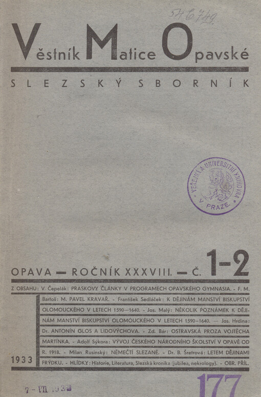 Věstník Matice Opavské. Opava: Matice Opavská, 1878-1935.