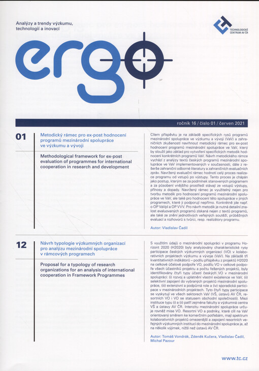 Ergo: analýzy a trendy výzkumu, technologií a inovací. Praha: Technologické centrum AV ČR, 2006-.