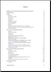 Genezis - Komentár k Starému zákonu. Publikácia spĺňajúca vysoké odborné kritériá je svojou štruktúrou rozčlenená na päť častí. Úvod každej kapitoly tvorí nový preklad pôvodného hebrejského textu Biblie doplnený prekladom starovekého gréckeho textu. Po prekladoch nasleduje náročný filologický rozbor state, zaujímavý najmä pre znalcov biblických jazykov. Pre neodborníkov bude zaiste obohacujúce objavovať, akými jazykovými nuansami disponovali staroveké jazyky pre zachytenie takých nezachytiteľných skutočností, ako je vzájomný vzťah Boha a človeka. Najrozsiahlejšiu časť každej kapitoly tvorí samotný komentár. Verš za veršom, niekedy slovo za slovom sa autori usilujú vysvetliť skutočný zmysel neraz veľmi komplikovaných až záludných biblických formulácií vo svetle modernej historickej, literárnej, archeologickej, teologickej a sociologickej vedy. V časti nazvanej kompozícia dostane čitateľ možnosť nazrieť na komentovanú stať z nadhľadu, odhaliť zámer inšpirovaného autora, vidieť text v širokých biblických súvislostiach. Komentovanie v každej kapitole uzatvára inšpiratívne čítanie o tom, ako možno aplikovať biblický text v teologickej reflexii, v pastoračnej praxi a v liturgii. Čitateľskou lahôdkou, ktorá text publikácie nesmierne oživuje a niekedy aj odľahčuje, je citovanie komentárov z pera cirkevných otcov a židovských rabínov. Čitateľ bude vnímať tieto literárne skvosty ako veľké osvieženie.
