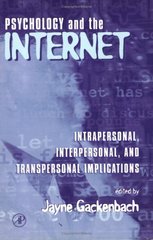 Psychology and the Internet provides the first resource for examining how the Internet affects our definition of who we are and our communication and work patterns. It also examines how normal behavior differs from the pathological with respect to Internet use. The book contains three sections: the first section covers the "self" in relation to the Internet; the second section explores how the Internet is used to meet new friends and love interests, as well as to conduct business; and the final section examines the philosophical ramifications of Internet use and our definitions of reality and consciousness. Key Features* Provides the first resource for looking at how the Internet affects our definition of who we are* Examines the philosophical ramifications of Internet use and our definitions of self, reality, and work* Explores how the Internet is used to meet new friends and love interests, as well as to conduct business * Discusses what represents normal behavior with respect to Internet use