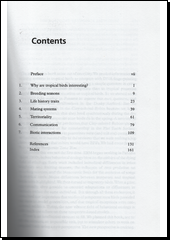 This book examines behavioral adaptations of tropical birds in timing of breeding, life history traits, mating systems and parental care, territoriality, communication, and biotic interactions, and emphasizes the many gaps in our knowledge of tropical birds. We urge students and researchers in temperate and tropical regions alike to realize the potential they have for improving our knowledge of avian adaptations far beyond what is currently accepted as gospel. Time is running out.