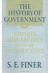 No one has hitherto had the breadth of imagination and intellectual boldness to describe and analyse government throughout recorded history and throughout the world. This unique study of government is the culmination of the work of the late S. E. Finer, one of the leading political scientists of the twentieth century. Ranging over 5,000 years, from the Sumerian city state to the modern European nation state, five themes emerge: state-building, military formats, belief systems, social stratification, and timespan. The three volumes examine both representative and exceptional polities, and focus on political elites of different types. Empires, Monarchies, and the Modern State (Books Four and Five) opens with Tokugawa Japan and thence reviews the evidence of Ch'ing, Ottoman, and Mughal Empires, before turning to facets of the re-creation, 'modernization', and transplantation of the European state model. It concludes with the synoptic review of 'Pathways to the Modern State'. Professor Finer's cogent descriptive analysis offers both an invaluable reference resource and an exhilarating journey across time and space.