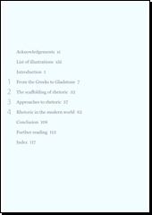 TOYE, Richard. Rhetoric: a very short introduction. First edition. Oxford: Oxford University Press, 2013. 11 nečíslovaných stran, 122 stran. Very short introductions, 346.