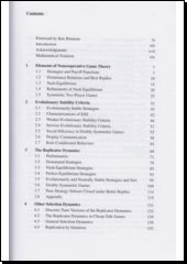 This text introduces current evolutionary game theory—where ideas from evolutionary biology and rationalistic economics meet—emphasizing the links between static and dynamic approaches and noncooperative game theory. Much of the text is devoted to the key concepts of evolutionary stability and replicator dynamics. The former highlights the role of mutations and the latter the mechanisms of selection. Moreover, set-valued static and dynamic stability concepts, as well as processes of social evolution, are discussed. Separate background chapters are devoted to noncooperative game theory and the theory of ordinary differential equations. There are examples throughout as well as individual chapter summaries. Because evolutionary game theory is a fast-moving field that is itself branching out and rapidly evolving, Jörgen Weibull has judiciously focused on clarifying and explaining core elements of the theory in an up-to-date, comprehensive, and self-contained treatment. The result is a text for second-year graduate students in economic theory, other social sciences, and evolutionary biology. The book goes beyond filling the gap between texts by Maynard-Smith and Hofbauer and Sigmund that are currently being used in the field. Evolutionary Game Theory will also serve as an introduction for those embarking on research in this area as well as a reference for those already familiar with the field. Weibull provides an overview of the developments that have taken place in this branch of game theory, discusses the mathematical tools needed to understand the area, describes both the motivation and intuition for the concepts involved, and explains why and how it is relevant to economics.