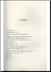 DAVIDSON-SCHMICH, Louise K. Gender quotas and democratic participation: recruiting candidates for elective offices in Germany. Ann Arbor: University of Michigan Press, [2016]. xv, 301 stran. New comparative politics.