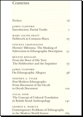 n these new essays, a group of experienced ethnographers, a literary critic, and a historian of anthropology, all known for advanced analytic work on ethnographic writing, place ethnography at the center of a new intersection of social history, interpretive anthropology, travel writing, discourse theory, and textual criticism. The authors analyze classic examples of cultural description, from Goethe and Catlin to Malinowski, Evans-Pritchard, and Le Roy Ladurie, showing the persistence of allegorial patterns and rhetorical tropes. They assess recent experimental trends and explore the functions of orality, ethnicity, and power in ethnographic composition. Writing Culture argues that ethnography is in the midst of a political and epistemological crisis: Western writers no longer portray non-Western peoples with unchallenged authority; the process of cultural representation is now inescapably contingent, historical, and contestable. The essays in this volume help us imagine a fully dialectical ethnography acting powerfully in the postmodern world system. They challenge all writers in the humanities and social sciences to rethink the poetics and politics of cultural invention.