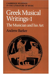 BARKER, Andrew, ed. Greek musical writing. 1st pbk. ed. (1989). New York: Cambridge University Press, c1984. xv, 332 s. Cambridge readings in the literature of music, Cambridge readings in the literature of music.