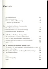 This is a collection in translation of essays by Paul Ricoeur which presents a comprehensive view of his philosophical hermeneutics, its relation to the views of his predecessors in the tradition and its consequences for the social sciences. The volume has three parts. The studies in the first part examine the history of hermeneutics, its central themes and the outstanding issues it has to confront. In Part II, Ricoeur's own current, constructive position is developed. A concept of the text is formulated as the implications of the theory are pursued into the domains of sociology, psychoanalysis and history. Many of the essays appear here in English for the first time; the editor's introduction brings out their background in Ricoeur's thought and the continuity of his concerns. The volume will be of great importance for those interested in hermeneutics and Ricoeur's contribution to it, and will demonstrate how much his approach offers to a number of disciplines.