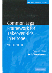 VAN GERVEN, Dirk, ed. Common legal framework for takeover bids in Europe. 1st pub. Cambridge: Cambridge University Press, 2010. ix, 321 s. Law practitioner series.