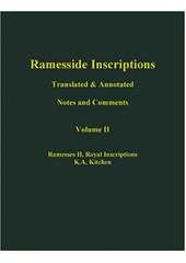 KITCHEN, Kenneth Anderson. Ramesside inscriptions translated and annotated: notes and comments. 1st ed. Cambridge (Mass.): Blackwell, 1999. XXX, 642 s., 30 s. map a plánů. Ramesside inscriptions translated and annotated. Series B, Vol. 2.