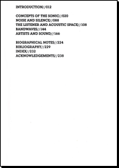 Sound. 1st pub. Editor Caleb KELLY. London :, Cambridge, Massachusetts: Whitechapel Gallery ;, MIT Press, 2011, 239 s. Documents of contemporary art. ISBN 978-0-85488-187-1.