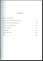HURSTON, Zora Neale. Novels and stories: Jonah's gourd vine; Their eyes were watching God; Moses, man of the mountain; Seraph on the Suwanee; Selected Stories. 1st print. New York: The Library of America, 1995, 1041 s. ISBN 0-940450-83-6.