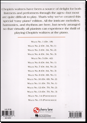 CHOPIN, Fryderyk. Chopin waltzes for easy piano. [New York]: Cherry Lane Music Company, [2013]. 1 partitura (37 stran). Easy piano.
