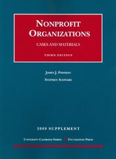 This is the 2009 supplement to Fishman and Schwarz Nonprofit Organizations Cases and Materials, 3d law school casebook. It includes expertly edited cases issued since release of the casebook, class notes, and problems for class discussion.