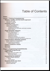 MARTIN, Osvaldo. Bayesian analysis with Python: introduction to statistical modeling and probabilistic programming using PyMC3 and ArviZ. Second edition. Birmingham: Packt, 2018. v, 341 stran.