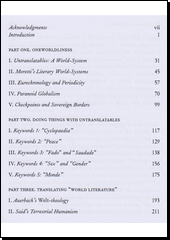 Proti světové literatuře: O politice nepřeložitelnosti obhajuje přehodnocení srovnávací literatury zaměřené na problémy, které vyvstanou, když rozsáhlá paradigmata literární vědy ignorují politiku „nepřeložitelného“ – říše těch slov, která jsou neustále překládána, špatně překládána., přenesené z jazyka do jazyka, nebo zvláště odolné vůči substituci.