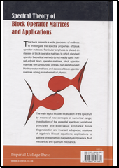 TRETTER, Christiane. Spectral theory of block operator matrices and applications [elektronický zdroj]. Hackensack, NJ: Distributed by World Scientific Pub., c2008. 1 online zdroj (xxxii, 264 p.).