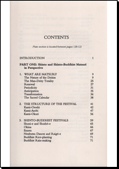 Contribution to Western understanding of the nature and manifestations of Shinto through the vast galaxy of historic festivals (matsuri) that are here categorized and analysed.
