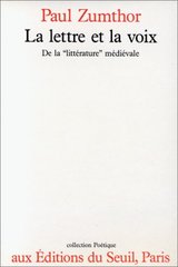ZUMTHOR, Paul. Le lettre et la voix: de la "littérature" médiévale. Paris: Éditions du Seuil, c1987. 346 s. Poétique.