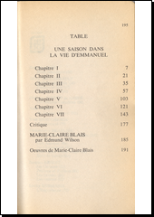 BLAIS, Marie Claire. Une saison dans la vie d'Emmanuel. Québec: Stanké, c1980. 195 p. Québec 10/10, 18.