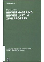 LEIPOLD, Dieter. Beweismaß und Beweislast im Zivilprozeß: Vortrag gehalten vor der Juristischen Gesellschaft zu Berlin am 27. Juni 1984. Berlin: Walter de Gruyter, 1985. 26 stran. Schriftenreihe der Juristischen Gesellschaft zu Berlin, Heft 93.