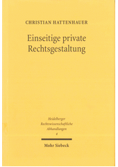 HATTENHAUER, Christian. Einseitige private Rechtsgestaltung: Geschichte und Dogmatik. Tübingen: Mohr Siebeck, 2011. xxviii, 530 s. Heidelberger Rechtswissenschaftliche Abhandlungen (Mohr Siebeck), Bd. 4.