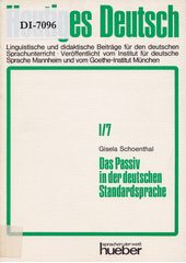 SCHOENTHAL, Gisela. Das Passiv in der deutschen Standardsprache: Darstellung in der neueren Grammatiktheorie und Verwendung in Texten gesprochener Sprache. 1. Aufl. München: Hueber, 1976. 258 s. Sprachen der Welt, Bd. 7.