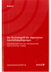 KELLNER, Markus. Der Rechtsbegriff der allgemeinen Geschäftsbedingungen: Anwendungsbereich der Inhaltskontrolle nach § 879 Abs. 3 ABGB. Wien: Manzsche Verlags- und Universitätsbuchhandlung, 2013. xliii, 324 stran.