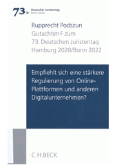 Empfiehlt sich eine stärkere Regulierung von Online-Plattformen und anderen Digitalunternehmen?. München: C.H. Beck, 2020. 107 stran. Verhandlungen des 73. Deutschen Juristentages, Band I (Gutachten F).