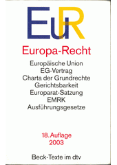 CLASSEN, Claus Dieter, ed. Europa-Recht: Verträge zur Gründung der Europäischen Gemeinschaften, Vertrag über die Europäische Union, Übereinstimmungstabellen, Charta der Grundrechte der Europäischen Union, Satzung des Europarates, Verfahrensordnungen, Menschenrechtskonvention, Europawahl-Gesetz, Europaabgeordnetengessetz, Ausfügrungsgesetze zu Art. 23 GG. 18., neubearbeitete Auflage. München: Deutscher Taschenbuch Verlag, 2003. xxvi, 669 stran. Beck-Texte im dtv.