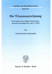 GOLDSCHMIDT, Christof-Ulrich. Die Wissenszurechnung: ein Problem der jeweiligen Wissensnorm, entwickelt am Beispiel des § 463 S. 2 BGB. Berlin: Duncker & Humblot, 2001. 291 stran. Schriften zum Bürgerlichen Recht, Band 247.