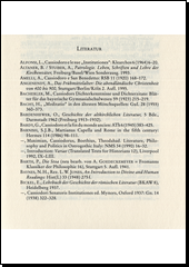 CASSIODORUS, Flavius Magnus Aurelius a BÜRSGENS, Wolfgang, ed. Institutiones divinarum et saecularium litterarum =: Einführung in die geistlichen und weltlichen Wissenschaften. Freiburg: Herder, 2003. 2 sv. (289, iv, [270] s.). Fontes Christiani, Bd. 39/1,2.
