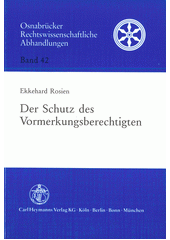 ROSIEN, Ekkehard. Der Schutz des Vormerkungsberechtigten: eine Untersuchung zum Schutz vor Einwirkungen tatsächlicher Art auf das vormerkungsbetroffene Grundstück. Köln: Carl Heymanns Verlag KG, 1994. xvii, 249 stran. Osnabrücker rechtswissenschaftliche Abhandlungen, Band 42.