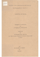 EBNER-ESCHENBACH, Marie von a SCHMIDT, Christa-Maria, ed. Autobiographische Schriften I: meine Kinderjahre : aus meinen Kinder- und Lehrjahren = Meine Kinderjahre : aus meinen Kinder- und Lehrjahren (Obsaž.). Tübingen: Max Niemeyer, 1989. 317 s.
