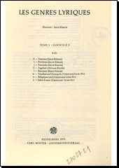 KÖHLER, Erich., ed. Les genres lyriques. Heidelberg: Carl Winter-Universitätsverlag, 1980. 92 s. Grundriss der romanischen Literaturen des Mittelalters, vol. 2.