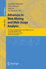 MOBASHER, Bamshad, ed. Advances in web mining and web usage analysis: 6th International Workshop on Knowledge Discovery on the Web, WebKDD 2004, Seattle, WA, USA, August 22-25, 2004 : revised selected papers. Berlin: Springer, c2006. x, 187 s. Lecture notes in computer science. Lecture notes in artificial intelligence, 3932.
