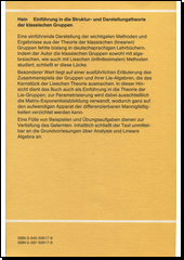 HEIN, Wolfgang. Einführung in die Struktur- und Darstellungstheorie der klassischen Gruppen. Berlin: Springer-Verlag, [1990]. x, 255 stran. Hochschultext.