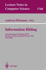 This book constitutes the thoroughly refereed post-workshop proceedings of the Third International Workshop on Information Hiding, IH'99, held in Dresden, Germany, in September/October 1999. The 33 revised full papers presented were carefully reviewed and selected from a total of 68 submissions. The dominating topic, dealt with in various contexts, is watermarking. The papers are organized in sections on fundamentals of steganography, paradigms and examples, beyond symmetric steganography; watermarking: proving ownership, detection and decoding, embedding techniques, new designs and applications, improving robustness, software protection; separating private and public information; and stego-engineering.