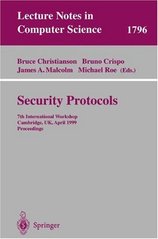 CHRISTIANSON, Bruce, ed. Security protocols: 7th international workshop, Cambridge, UK, April 19-21, 1999. Proceedings. Berlin: Springer, 2000. xii, 227 s. Lecture notes in computer science, 1796.