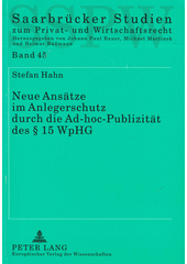 HAHN, Stefan. Neue Ansätze im Anlegerschutz durch die Ad-hoc-Publizität des § 15 WpHG. Frankfurt am Main: Peter Lang, Europäischer Verlag der Wissenschaften, 2004. xxxii, 255 s., s. xxxiii-lxxvii. Saarbrücker Studien zum Privat- und Wirtschaftsrecht, Bd. 45.
