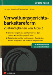 LECHNER-HARTLIEB, Caroline. Verwaltungsgerichtsbarkeitsreform: Zuständigkeiten von A bis Z : Einführung in das Verfahren vor den neuen Verwaltungsgerichten, Tabellarische Darstellung der Zuständigkeiten eingeteilt nach Materiengesetzen. Wien: LexisNexis, 2013. xvi, 163 s. Update Recht.